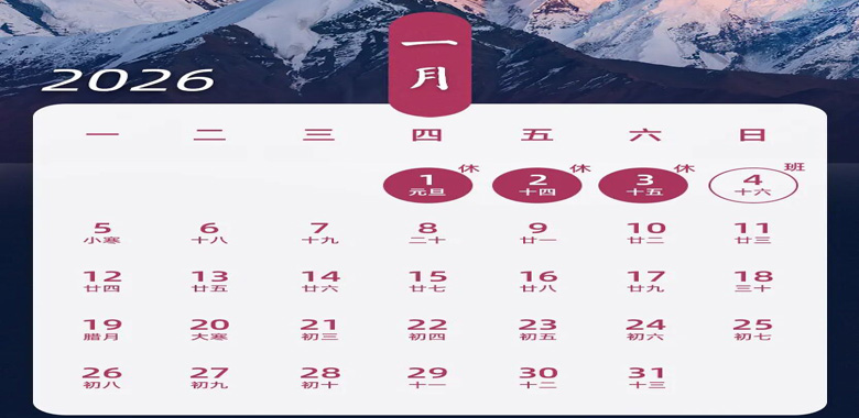 | 各省、自治区、直辖市人民政府,国务院各部委、各直属机构:经国务院批准,现将2026年元旦、春节、清明节、劳动节、端午节、中秋节和国庆节等放假调休日期的具体安排通知如下。一、元旦:1月1日(周四)至3日(周六)放假调休,共3天。1月4日(周日)上班。二、春节:2月15日(农历腊月二十八、周日)至23日(农历正月初七、周一)放假调休,共9天。2月14日(周六)、2月28日(周六)上班。三、清明节:4月4日(周六)至6日(周一)放假,共3天。四、劳动节:5月1日(周五)至5日... |