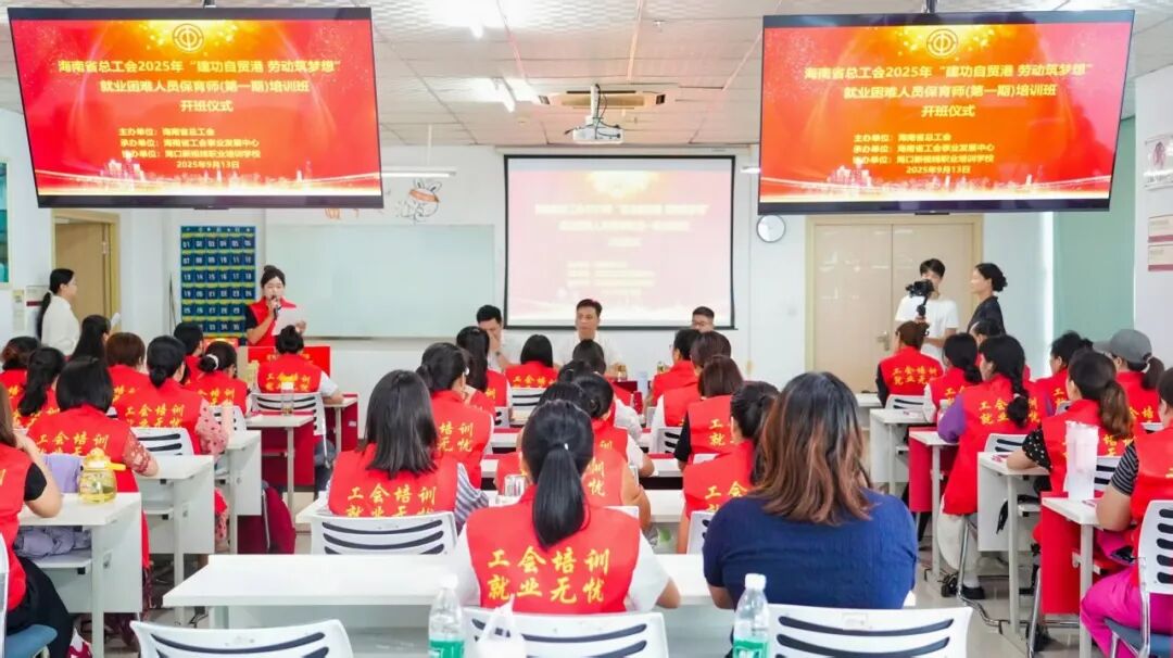 9月13日,由省总工会主办、省工会事业发展中心承办、海口新视线职业培训学校协办的2025年第一批“建功自贸港、劳动筑梦想”就业困难人员保育师培训班在海口顺利开班,来自全省各地60多名学员齐聚一堂,开启职业技能提升之旅。省工会事业发展中心和培训机构相关负责人出席开班仪式。