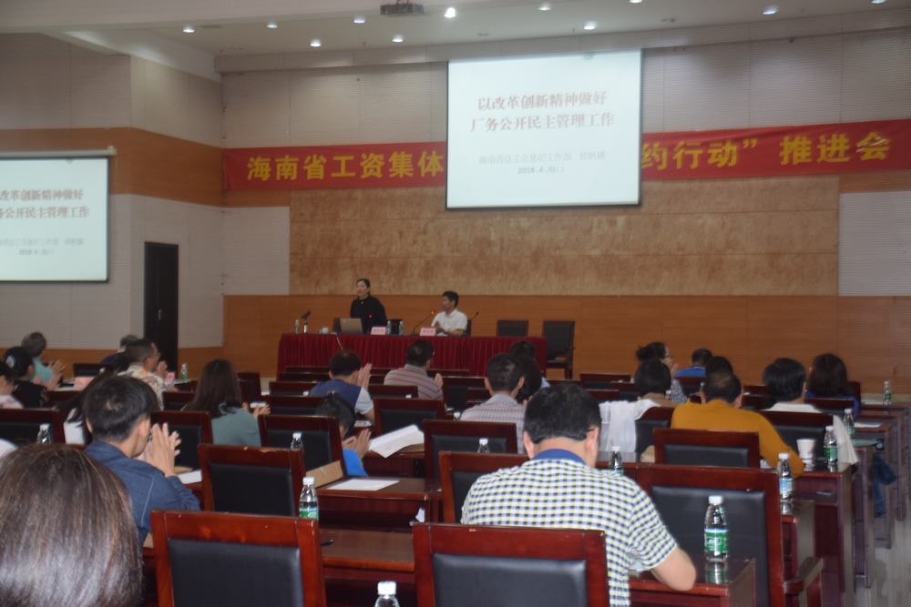 2018年4月26日上午,海南省工资集体协商“百日要约行动”推进会暨全省工会基层工作会议和厂务公开民主管理工作培训班(郑老师)