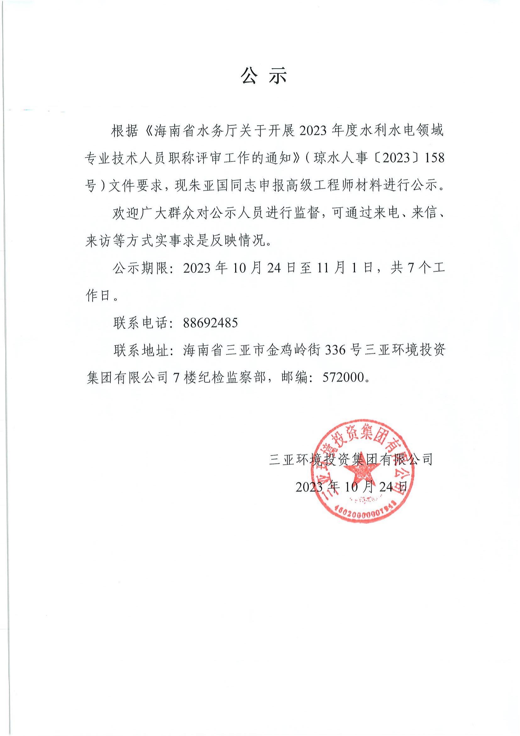三亚环境投资集团有限公司2023年度员工和成员企业经营班子组织