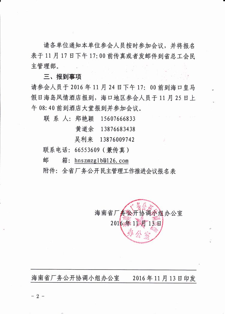 关于召开2016年全省工会民主管理工作会议的通知(琼工办发(2016)25号)