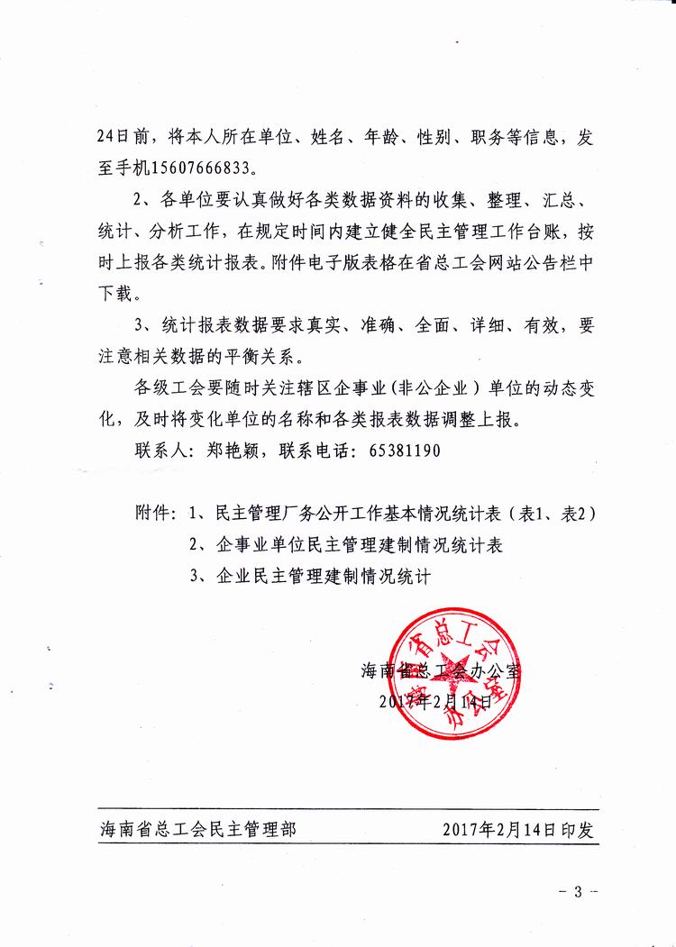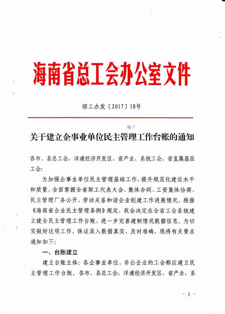 关于建立企事业单位民主管理工作台账的通知(琼工办发〔2017〕18号)